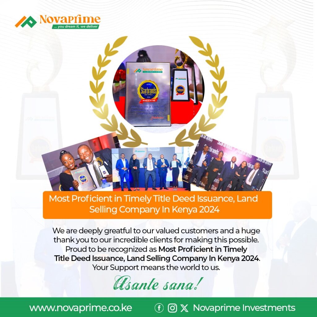 NovaPrime is honored to be awarded as the Most Proficient in Timely Title Deed Issuance and the Best Land Selling Company in Kenya for 2024.